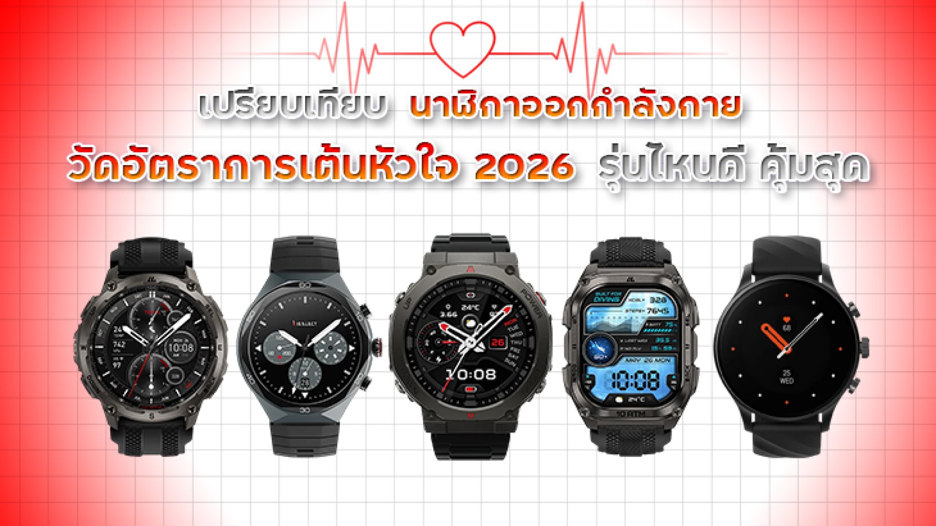 เปรียบเทียบนาฬิกาออกกำลังกายวัดอัตราการเต้นหัวใจ 2026 รุ่นไหนดี คุ้มสุด