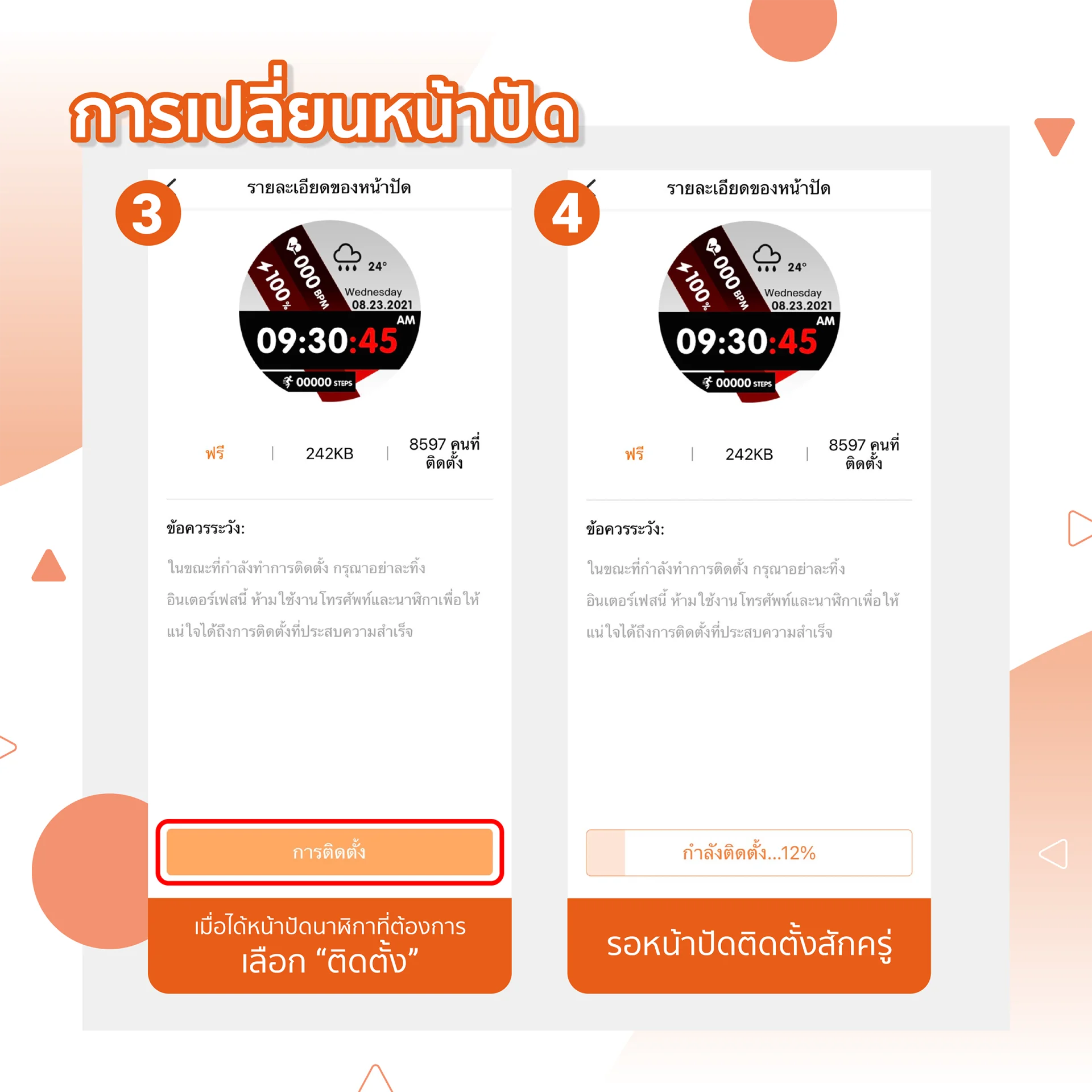 3.) เมื่อได้หน้าปัดนาฬิกาที่ต้องการเลือก “ติดตั้ง”