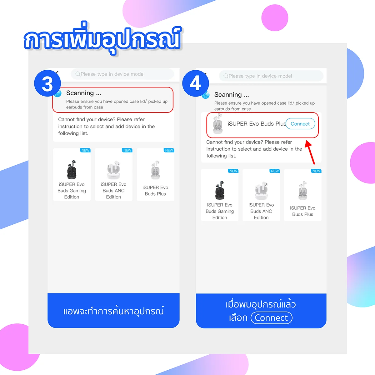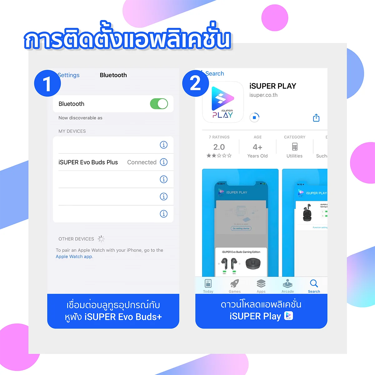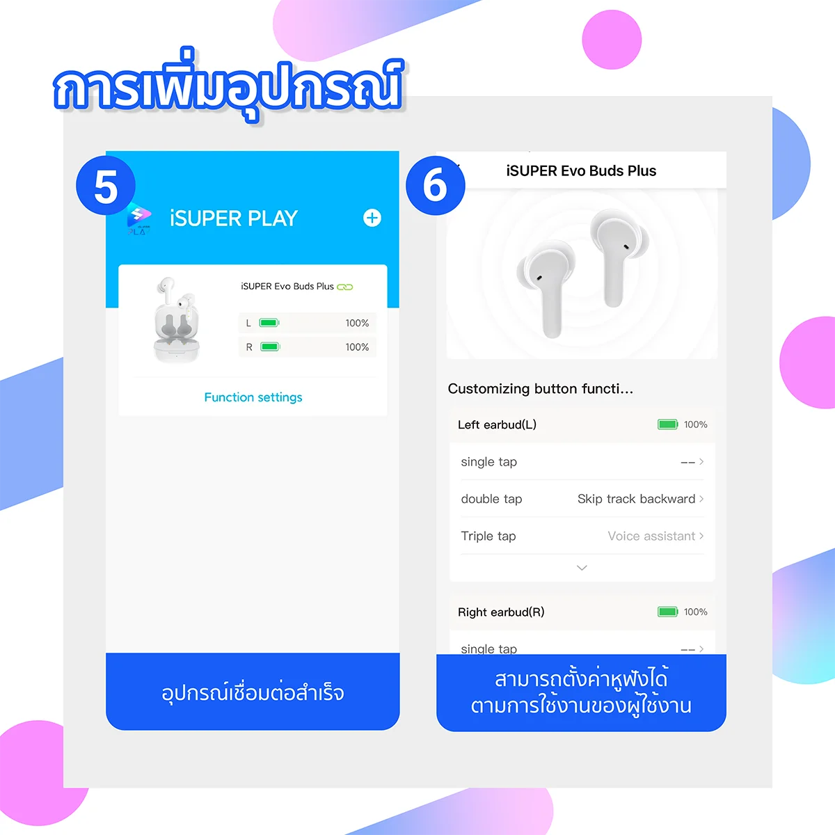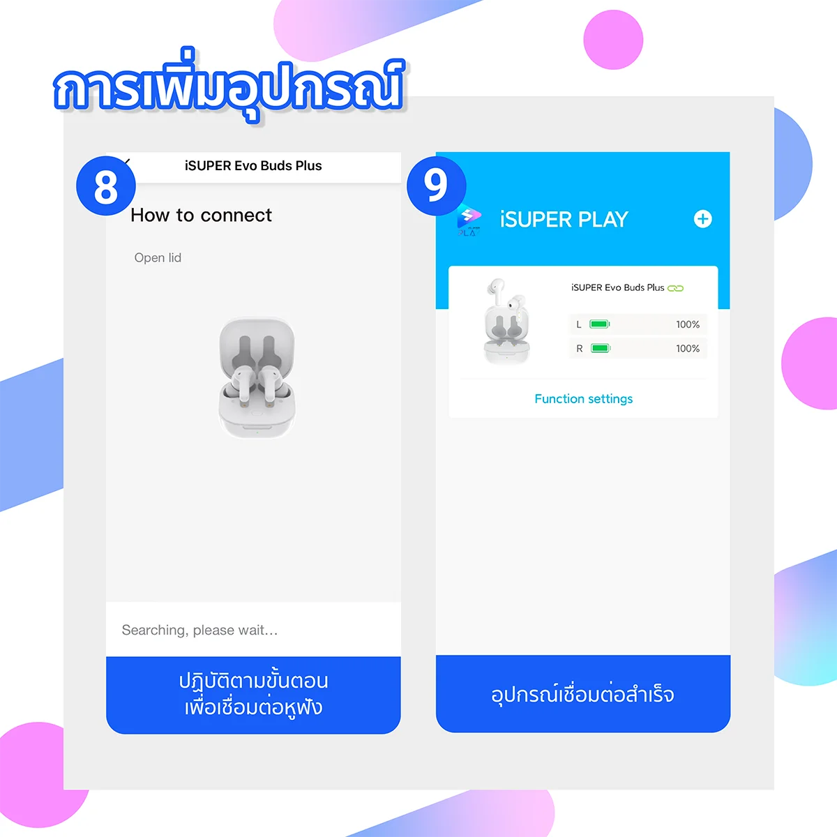 การเชื่อมต่อหูฟัง iSUPER EVO BUDS+ กับแอพ iSUPER PLAY