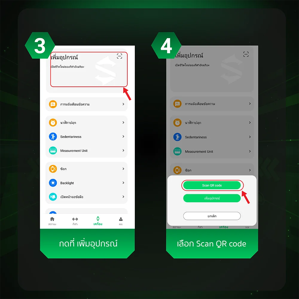 1.) เปิดเครื่องนาฬิกาจะเข้าไปที่หน้าสแกน QR Code