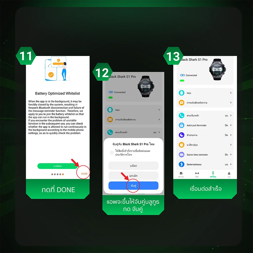 คู่มือการเชื่อมต่อ Black Shark S1 Pro กับ Shark Wear App สำหรับ Android