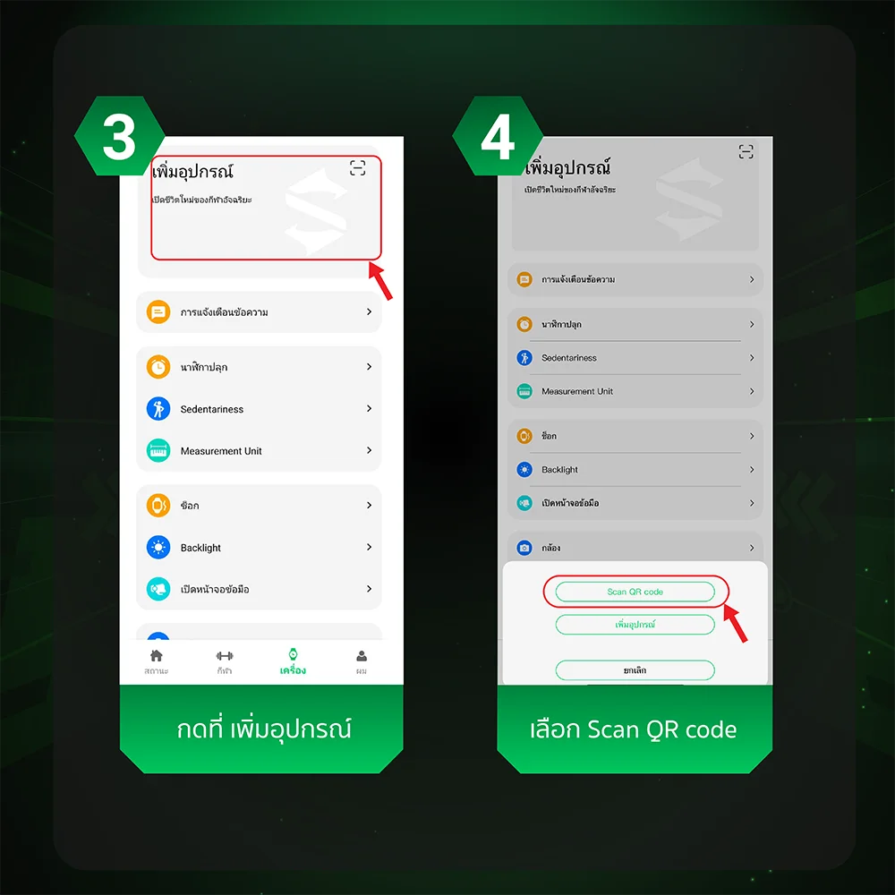 1.) เปิดเครื่องนาฬิกาจะเข้าไปที่หน้าสแกน QR Code