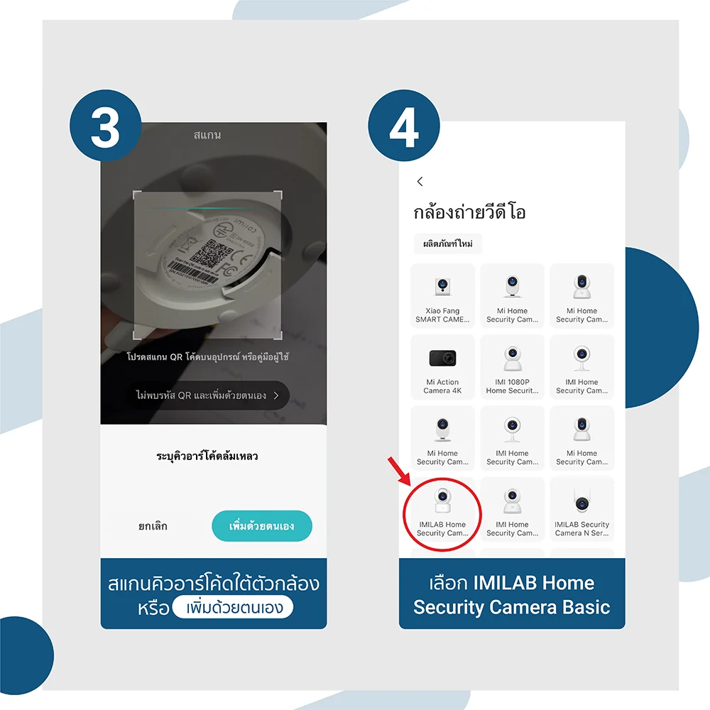 3.สแกนคิวอาร์โค้ดใต้ตัวกล้อง หรือ เพิ่มด้วยตนเอง