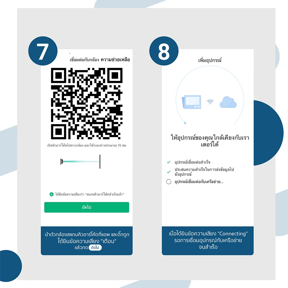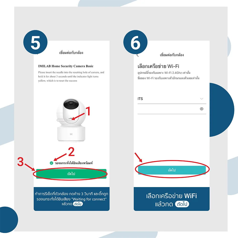 5.ทำการรีเซ็ตที่ตัวกล้อง กดค้าง 3 วินาที และติ๊กถูก รอจนกระทั่งได้ยินเสียง "Waiting for connect"แล้วกด "ถัดไป"