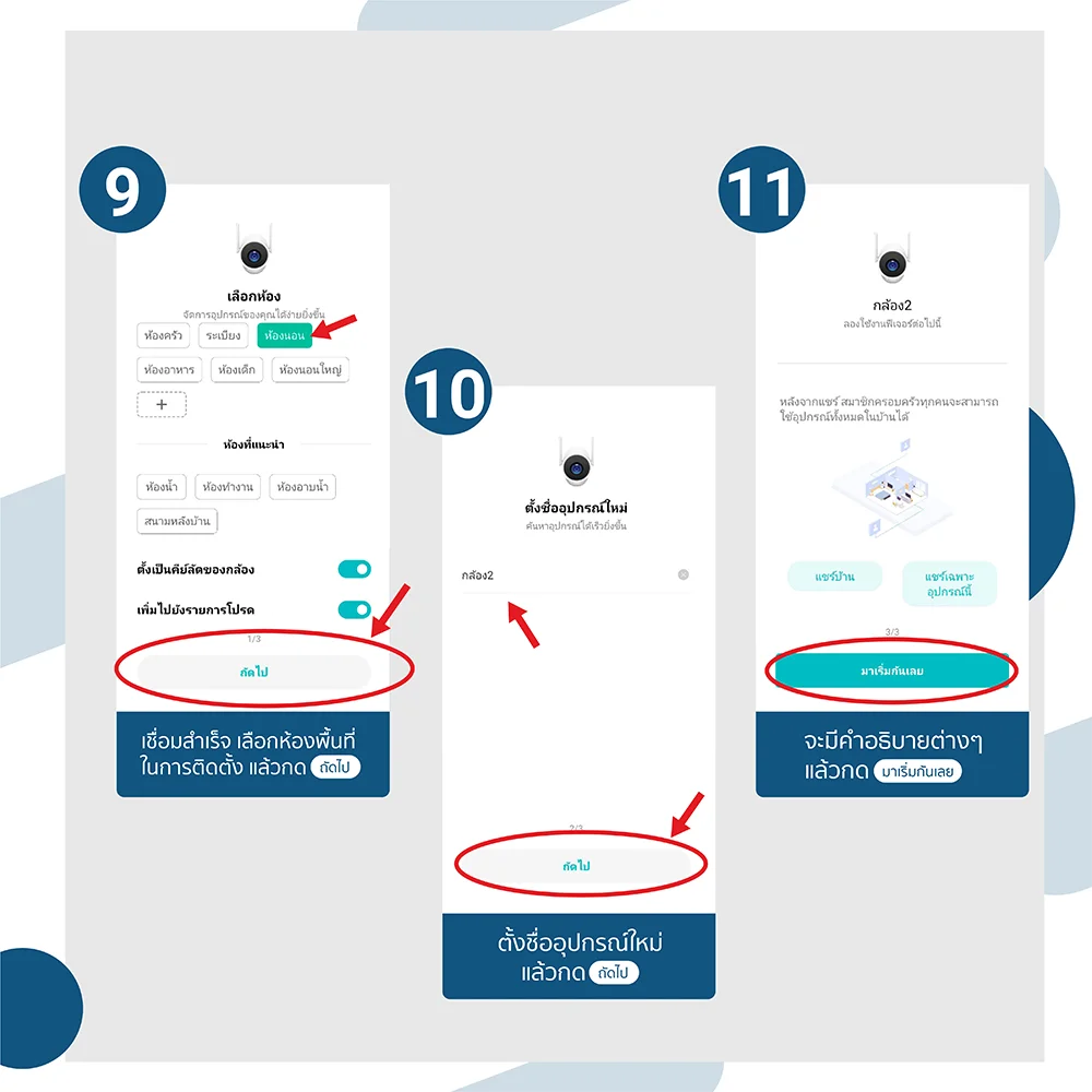9.เชื่อมสำเร็จ เลือกห้องพื้นที่ในการติดตั้ง แล้วกด "ถัดไป"