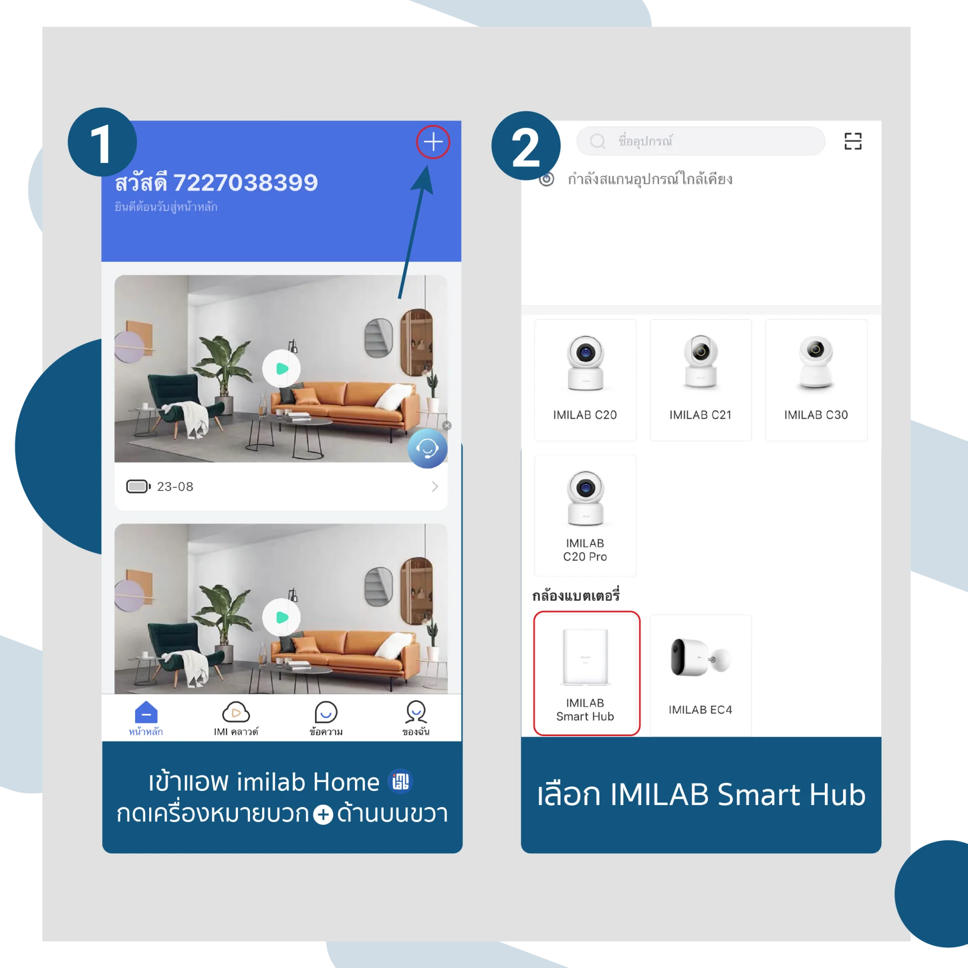 9.) กด + เพิ่มกล้องจาก IMILAB Smart Hub