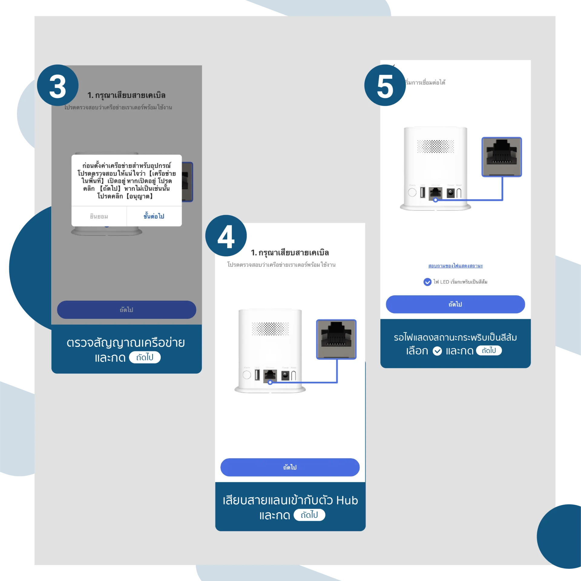 4.) เสียบสายแลนเข้ากับตัว Hub และกดถัดไป
