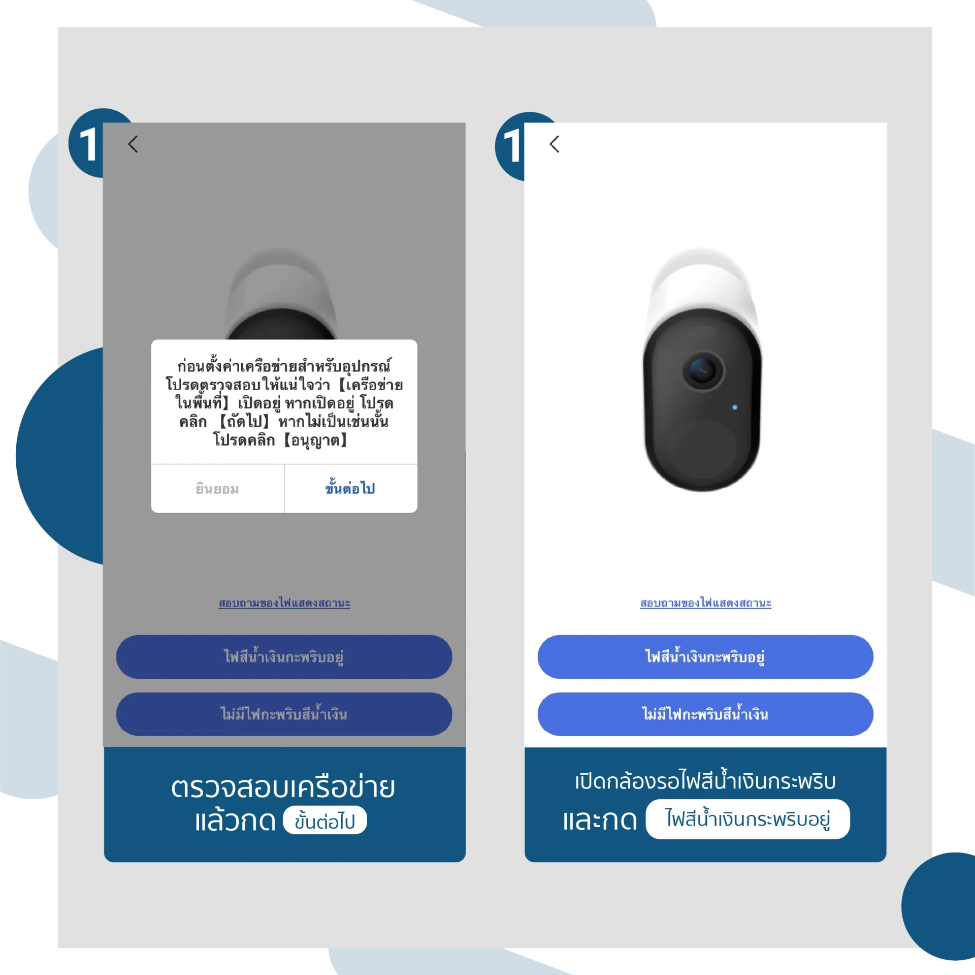 5.) รอไฟแสดงสถานะกระพริบเป็นสีส้ม ติ๊กถูกและกดถัดไป