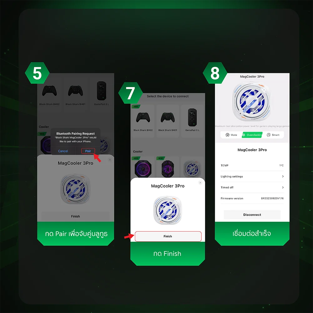 คู่มือการเชื่อมต่อ MagCooler 3 Pro กับ Shark Wear App สำหรับ iOS