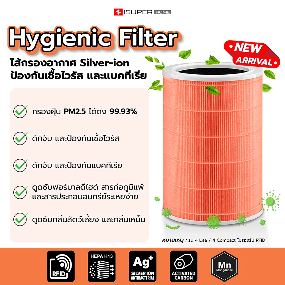 - นวัตกรรมใหม่ล่าสุด อัปเกรดชั้นกรองอากาศให้มีประสิทธิภาพมากขึ้น ด้วย 4 ชั้นกรอง +1 ชั้นเคลือบสารยับยั้งการเติบโตของเชื้อโรคไม่ให้แพร่กระจายในอากาศ