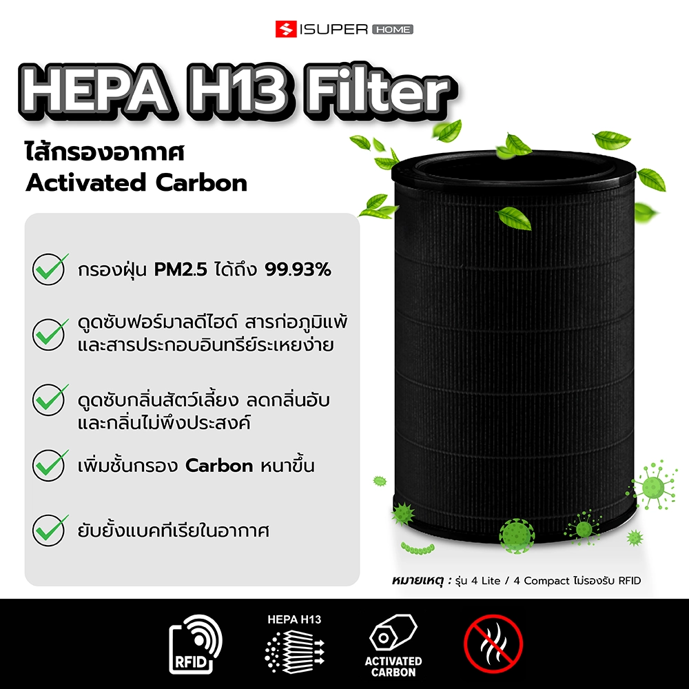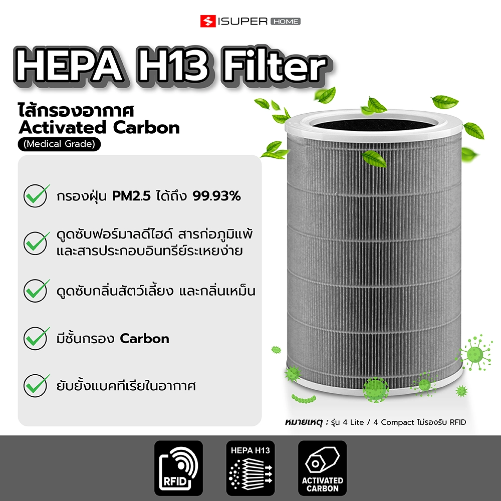 *หมายเหตุ ไส้กรอง รุ่น 4 Lite และ 4 Compact ไม่มี RFID