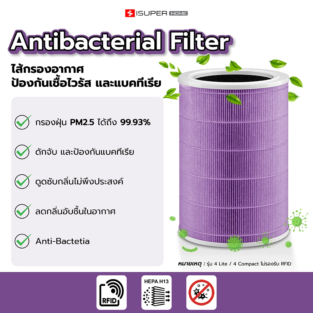 4.สีม่วง Antibacteria สำหรับเครื่องฟอกอากาศ Xiaomi รุ่น 2S,2H,3H,Pro,2C,3C,Smartmi สำหรับรุ่น 4 Lite,4 Compact จะแยกตัวเลือกเฉพาะรุ่น