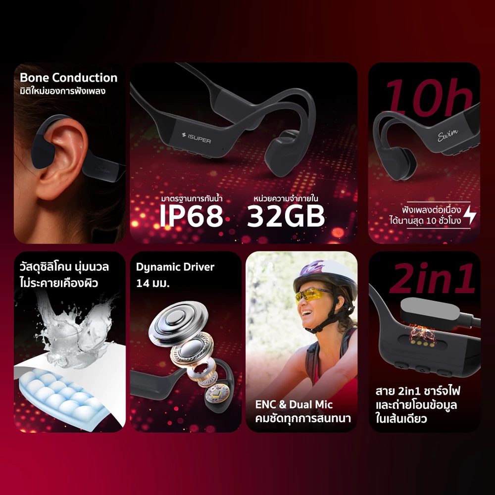 * รองรับการสวมใส่ใช้งานในขณะว่ายน้ำ และการออกกำลังกายบนบก