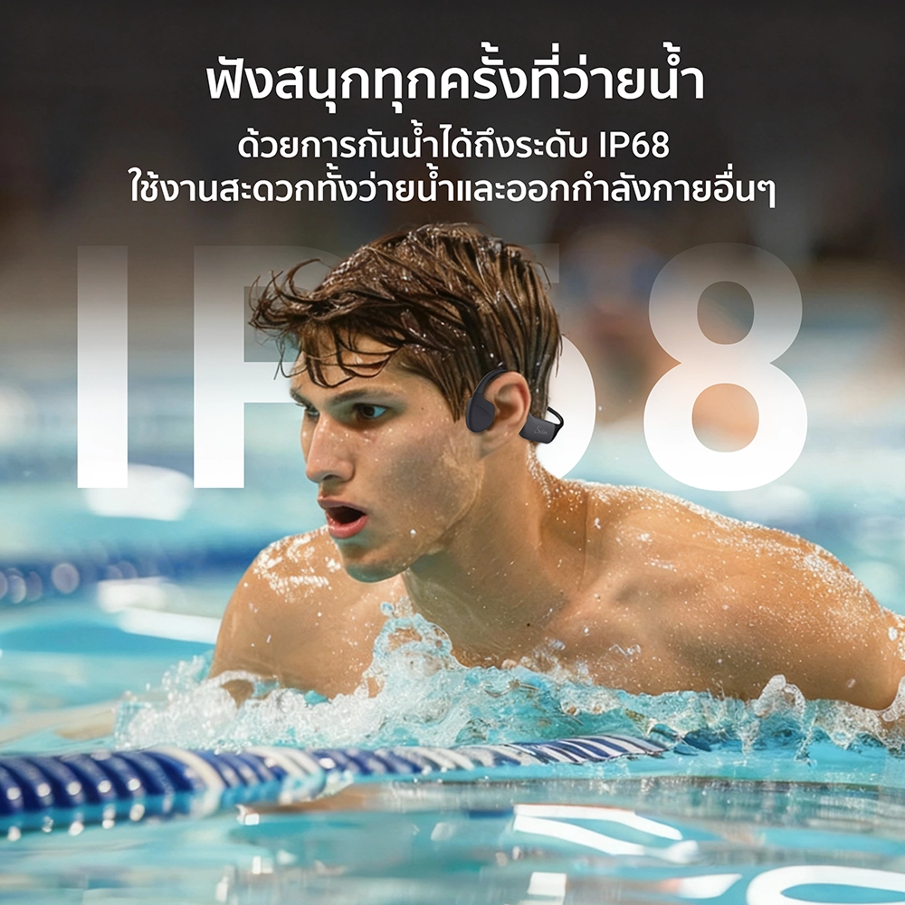 - สนุกไปกับทุกการว่ายน้ำ ด้วยหูฟังที่สามารถกันน้ำได้ถึงระดับ IP68