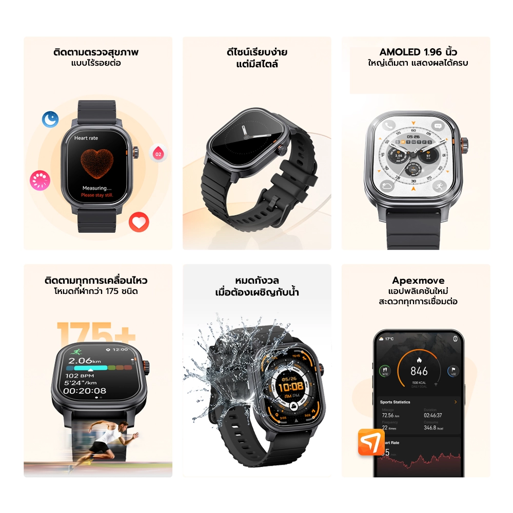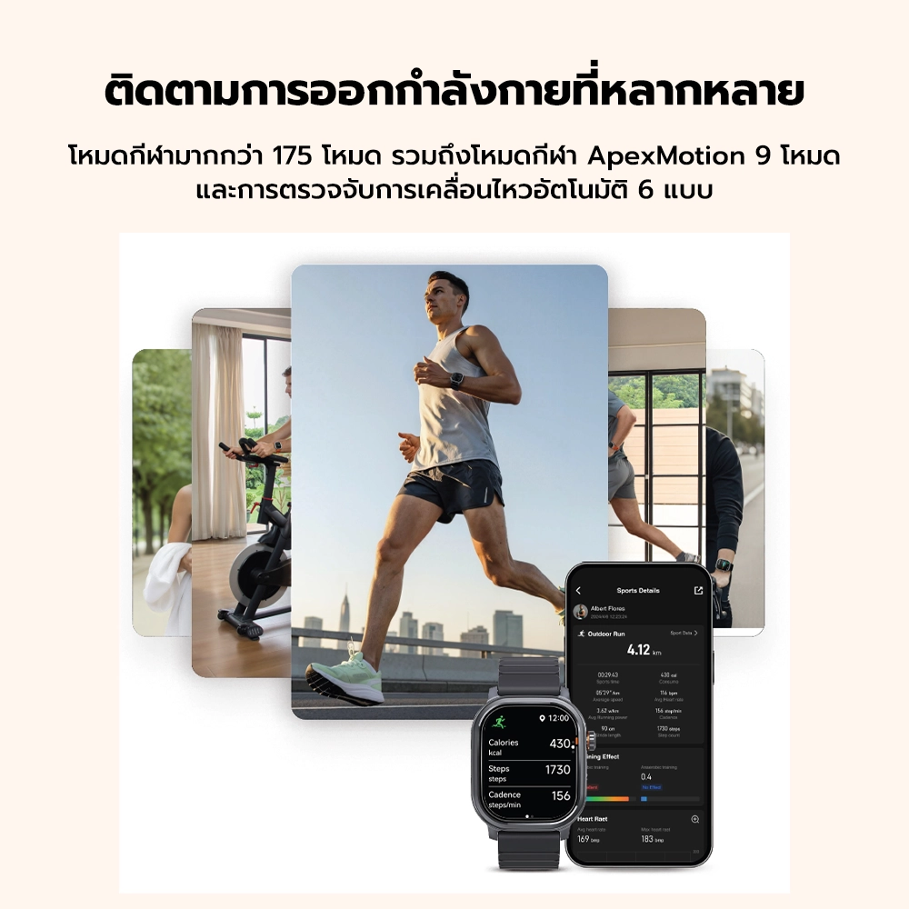 - เพื่อไลฟ์สไตล์การออกกำลังกายที่แตกต่าง มาพร้อมโหมดกีฬากว่า 175 ชนิด