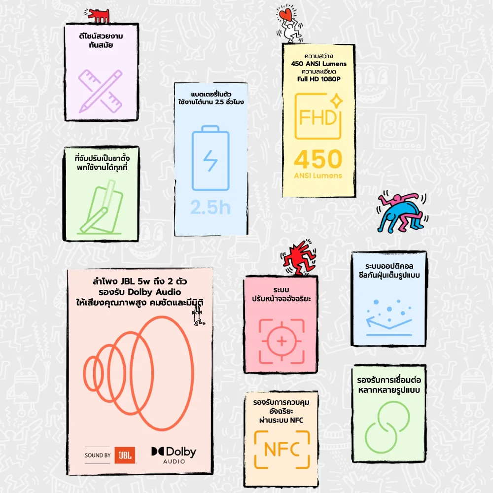 - ค่าความสว่าง True 450 ANSI Lumens ให้คุณได้ภาพที่คมชัดมากขึ้น