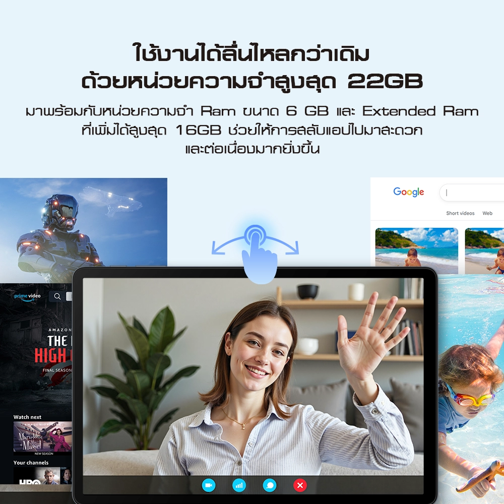 * RAM ในตัวขนาด 6GB + Extended Ram สูงสุด 16GB รวมเป็น 22GB