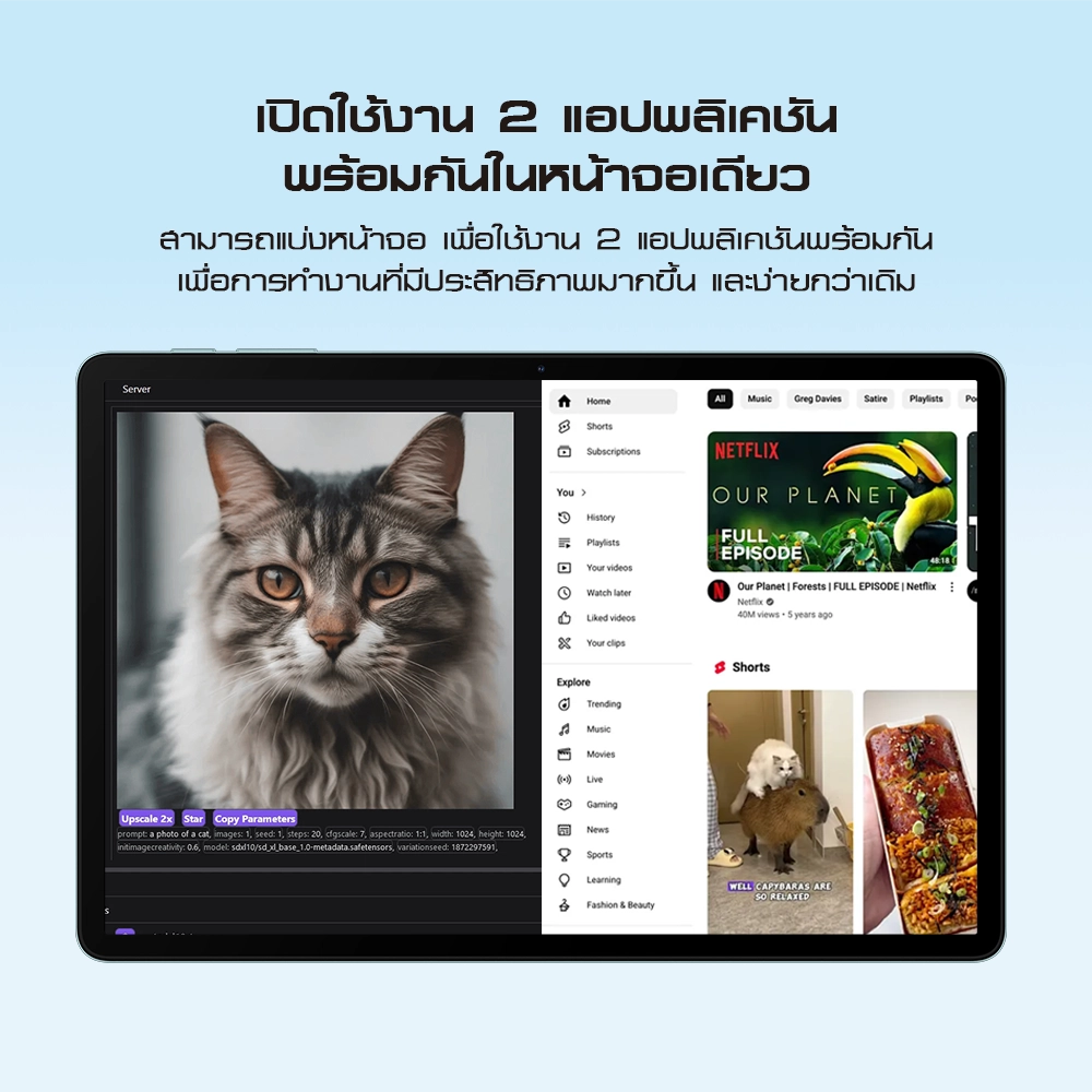 - รองรับการเปิดใช้งาน 2 แอปพลิเคชัน พร้อมกันในหน้าจอเดียว