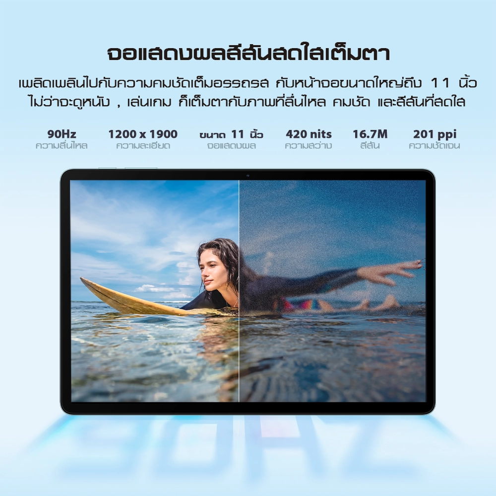 - ใหญ่เต็มตา ด้วยหน้าจอ IPS LCD ขนาด 11 นิ้ว Refresh rate 90Hz