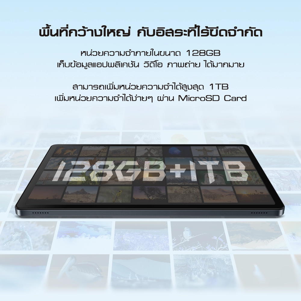 * ROM ภายในขนาด 128GB สามารถเพิ่ม Micro-SD Card สูงสุด 1TB
