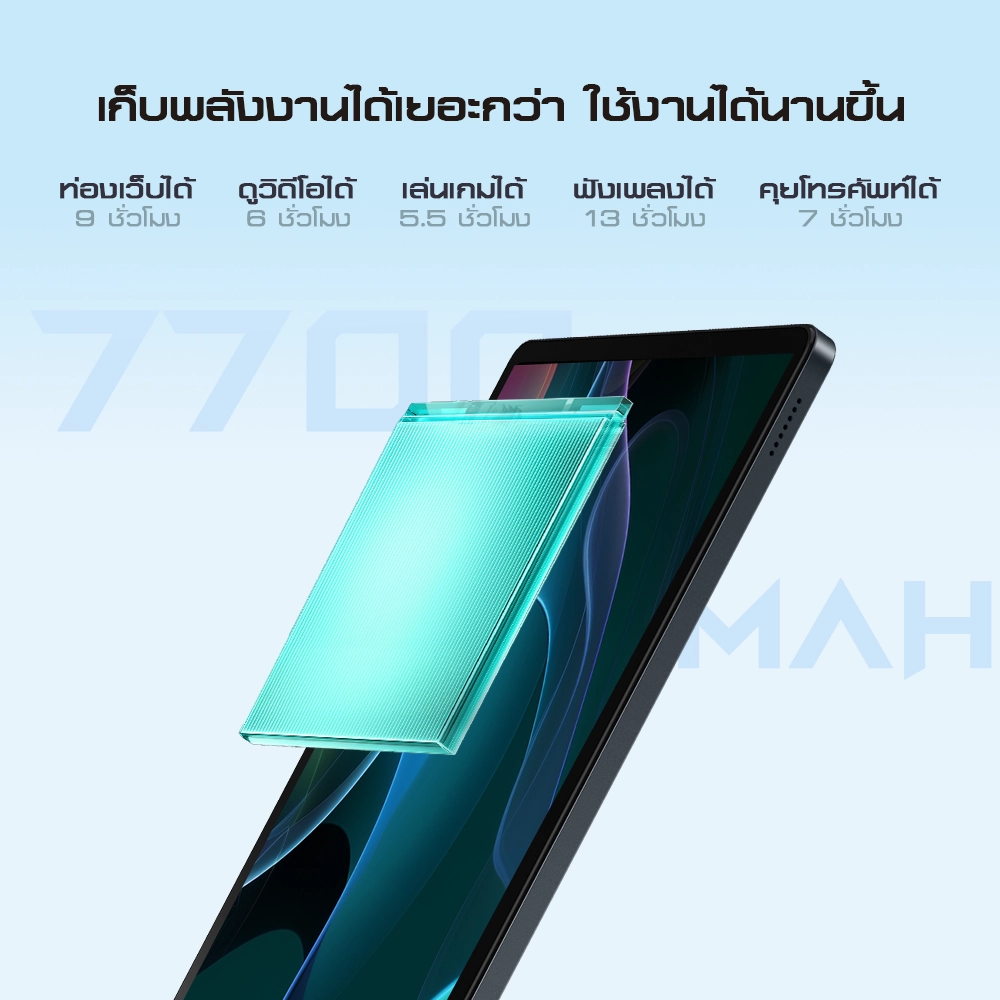 - แบตเตอรี่ขนาด 7700mAh ใช้งานได้ยาวนานสุดถึง 13 ชั่วโมง