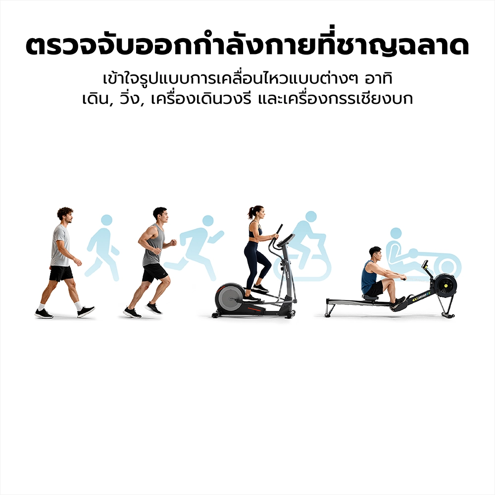 * มาพร้อมระบบตรวจจับออกกำลังกาย อาทิ เดิน , วิ่ง และเครื่องกรรเชียงบก