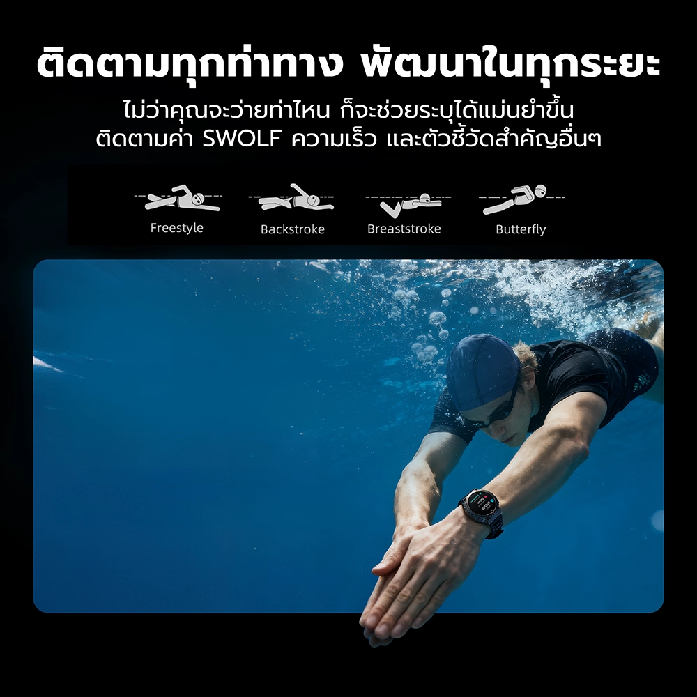* ติดตามทุกท่าทางการว่ายน้ำ และช่วยพัฒนาการว่ายน้ำให้ดีมากยิ่งขึ้น