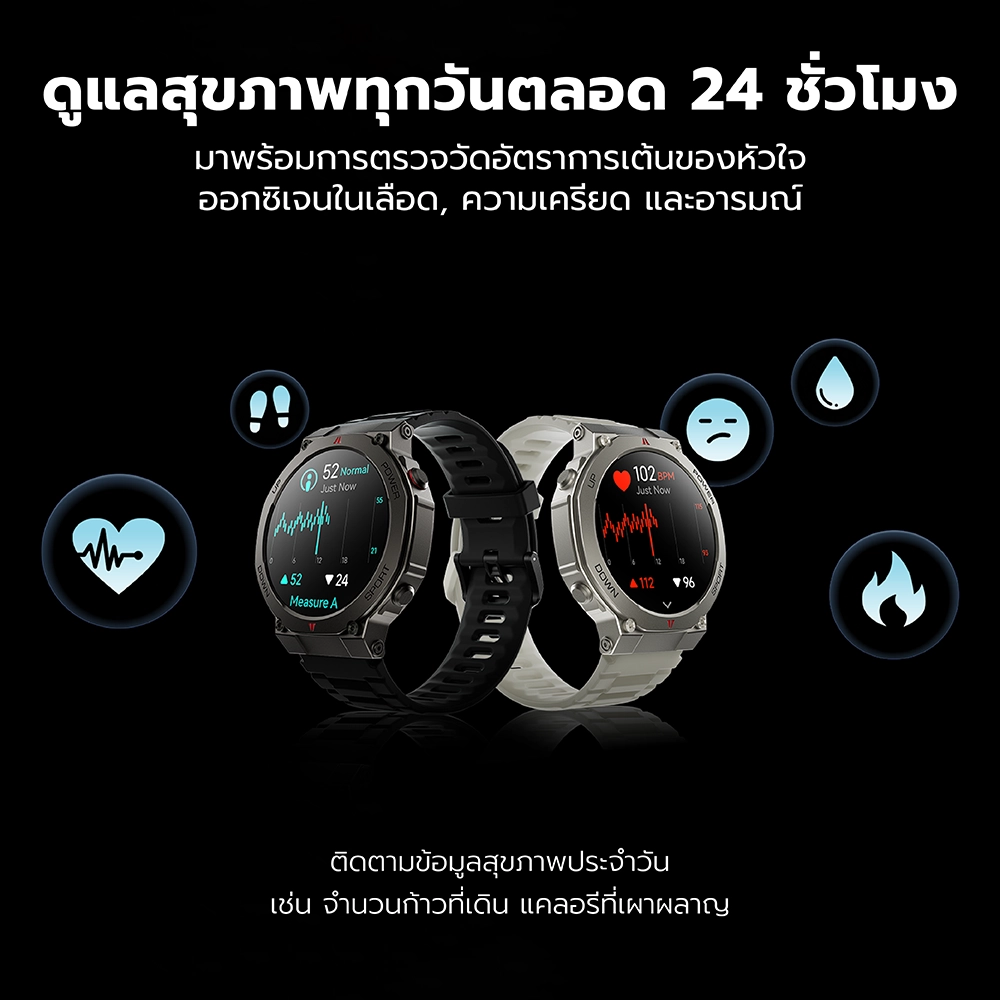 - ฟังก์ชันตรวจวัดอัตราการเต้นของหัวใจ, ตรวจวัดออกซิเจนในเลือด และฟังก์ชันการตรวจวัดค่าสุขภาพอื่นๆ เป็นเพียงการวัดค่าเบื้องต้นเท่านั้น *ไม่สามารถใช้อ้างอิงทางการแพทย์ได้