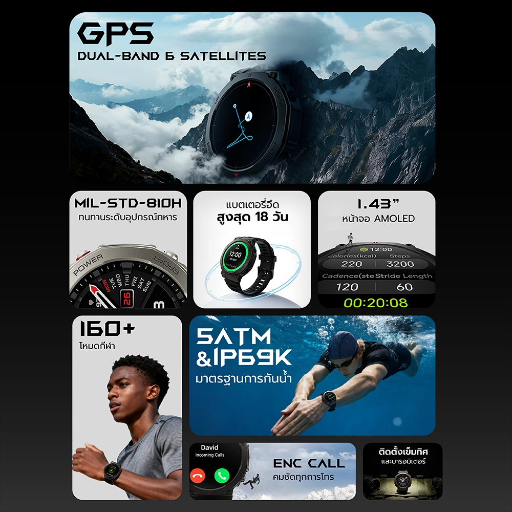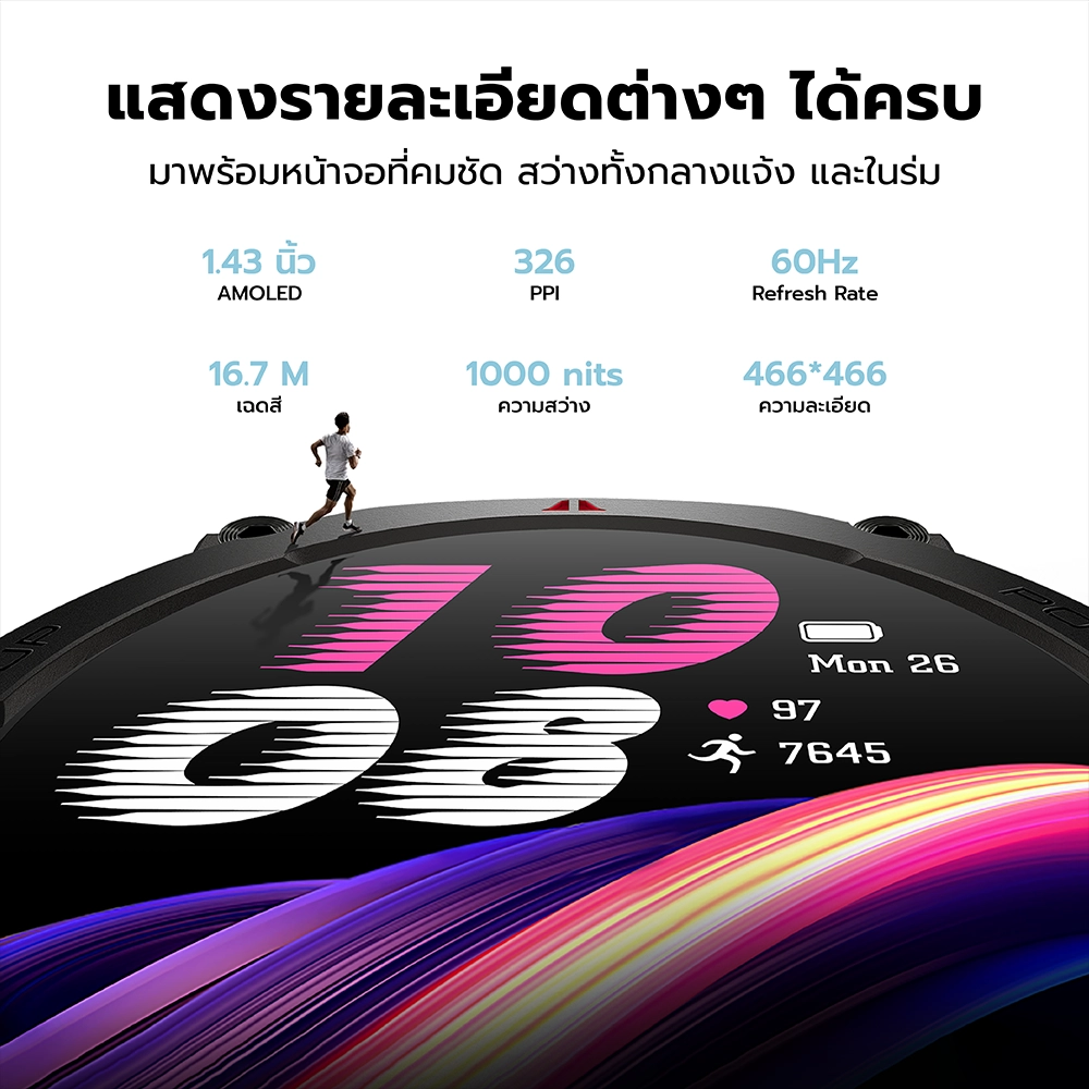 หน้าจอ : AMOLED ขนาด 1.43 นิ้ว