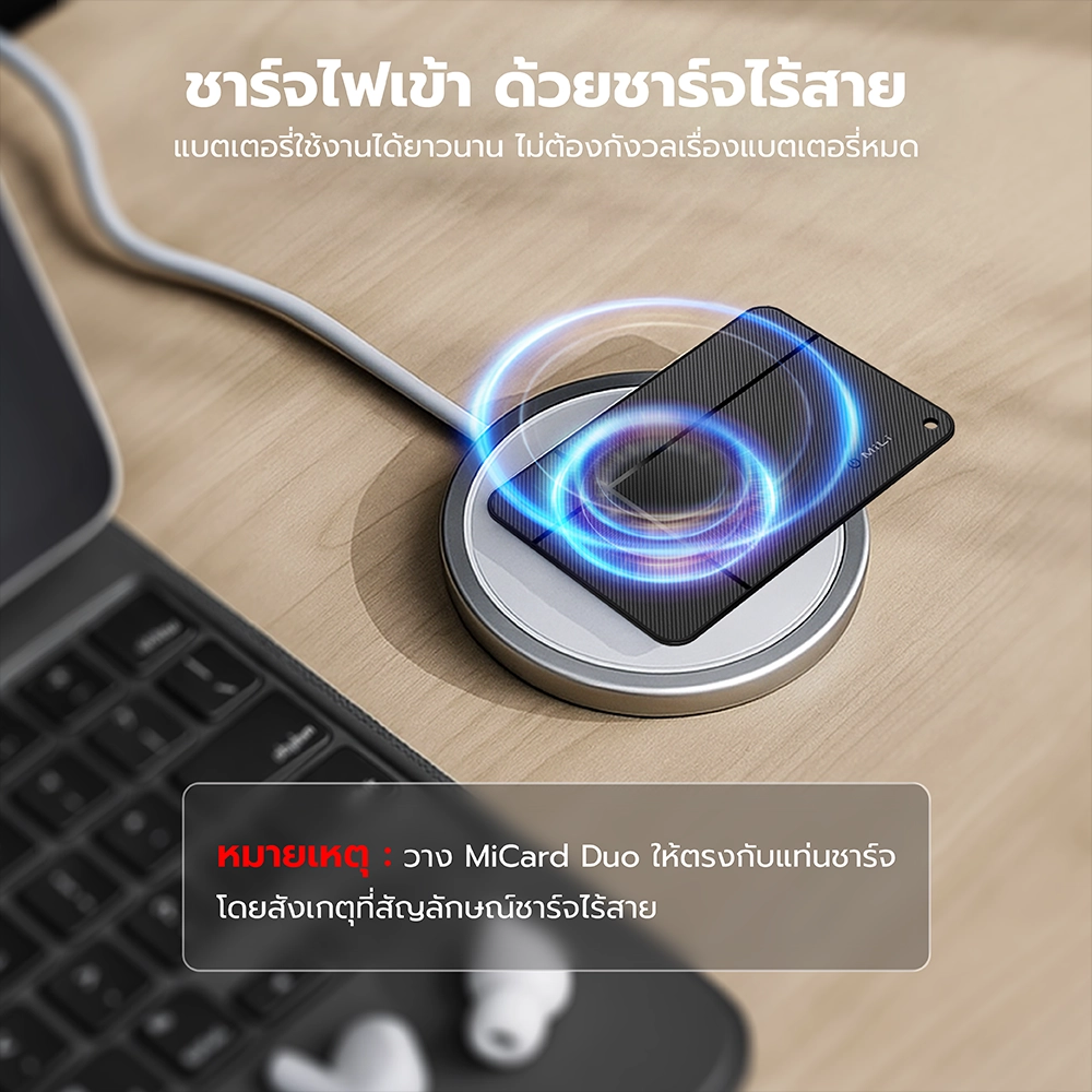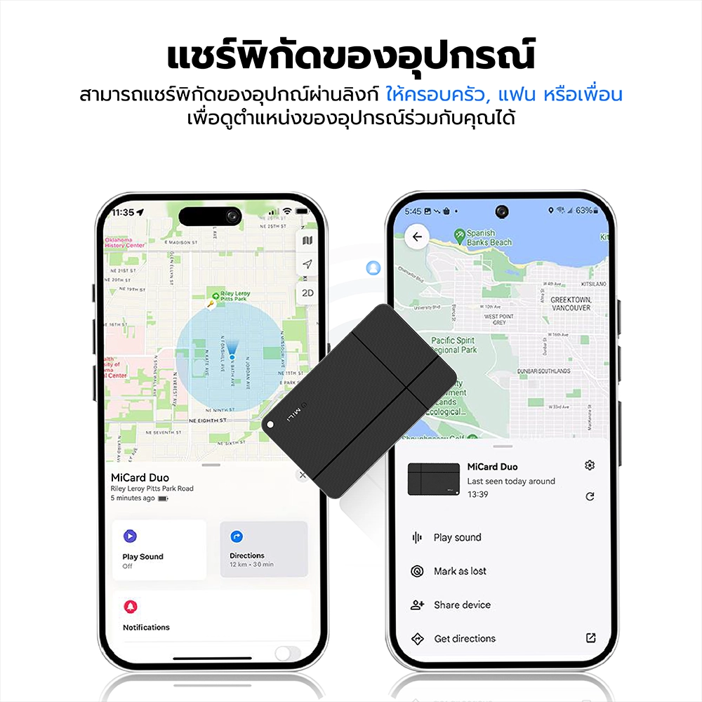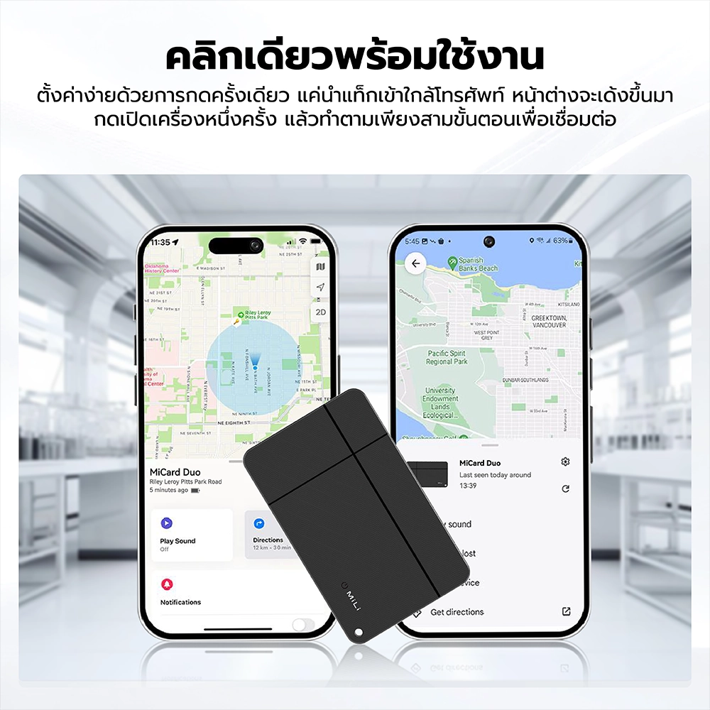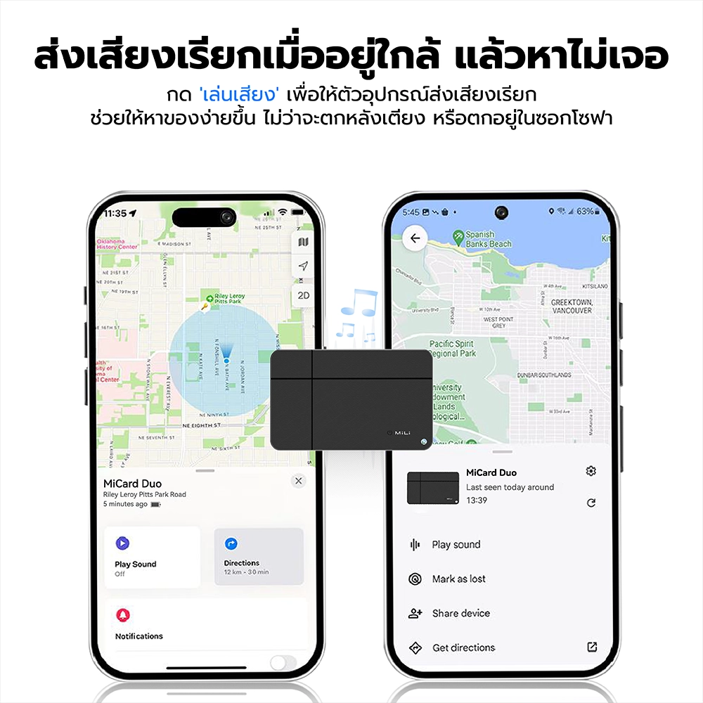 - เมื่ออยู่ในพิกัดแล้ว แต่หาไม่เจอสามารถสั่งให้ MiCard Duo ส่งเสียงเรียกได้