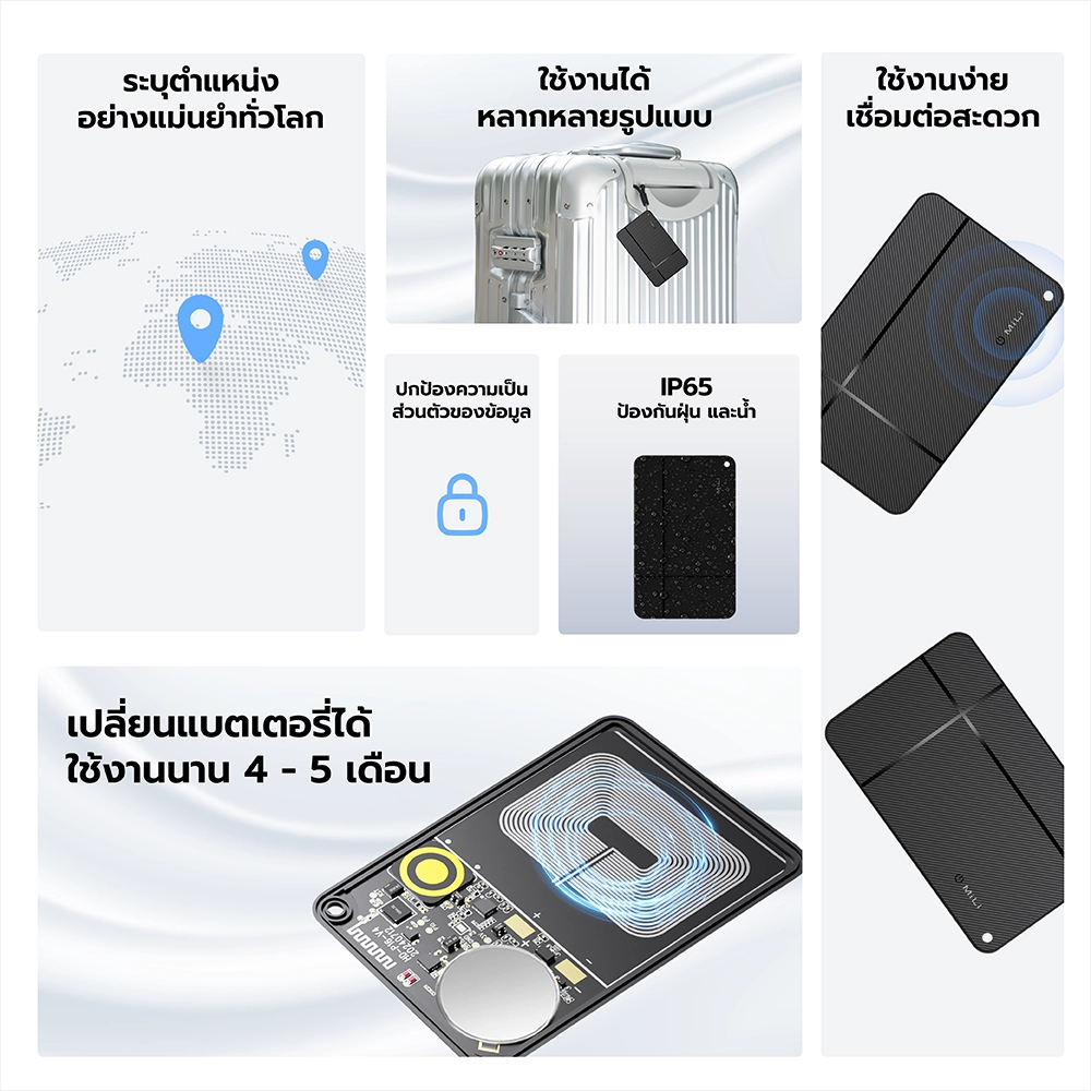 - ค้นหาตำแหน่งของสิ่งของได้ทุกเวลา และมีความแม่นยำสูง