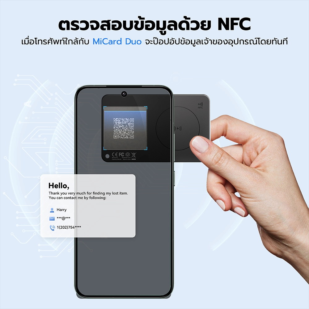 - ตรวจสอบข้อมูลติดต่อเจ้าของ MiCard Duo ได้ง่ายๆผ่าน NFC