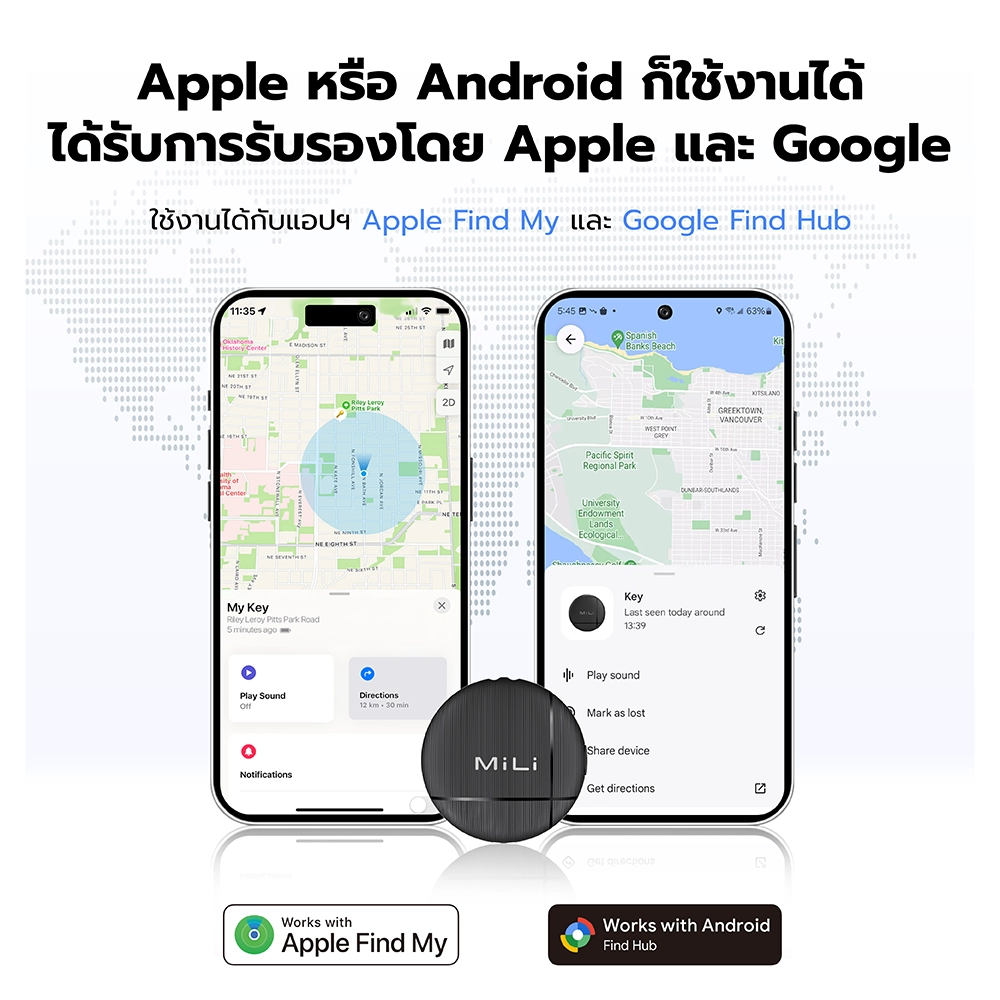 * เชื่อมต่อได้กับ Apple Find My และ Google Find Hub
