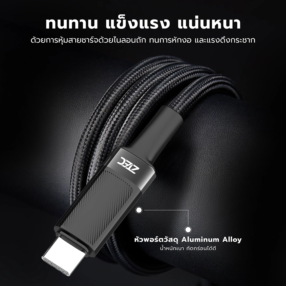 - แข็งแรง แน่นหนา ด้วยสายชาร์จหุ้มด้วยไนลอนถัก ทนการหักงอ และแรงกระชาก